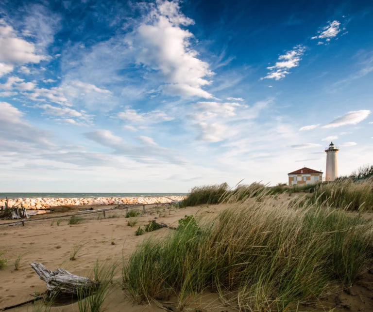 Bibione offre numerosi luoghi che si prestano a una passeggiata romantica: il lungomare al tramonto, la zona del faro di Punta Tagliamento, i sentieri della pineta e gli scorci tranquilli della laguna. Il percorso che conduce al faro è uno dei più amati dalle coppie: un cammino semplice, immerso nel verde e affacciato su tratti di spiaggia incontaminata.