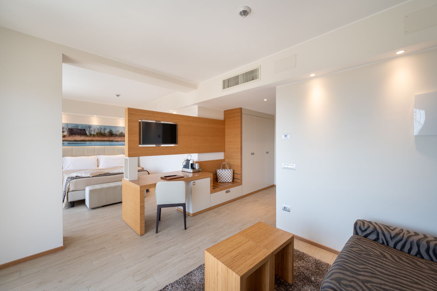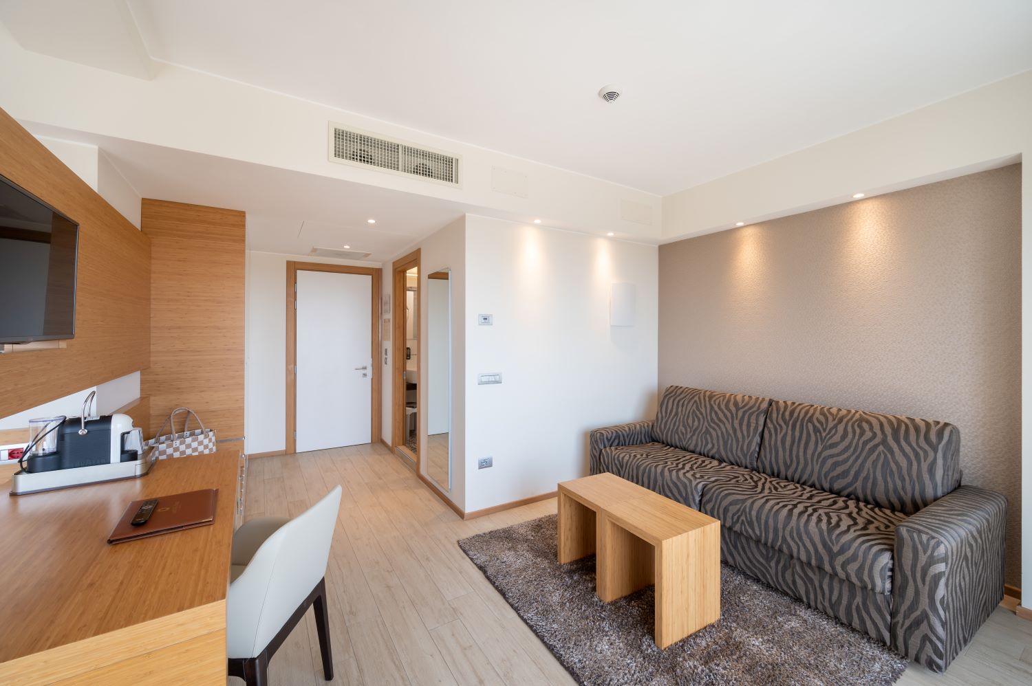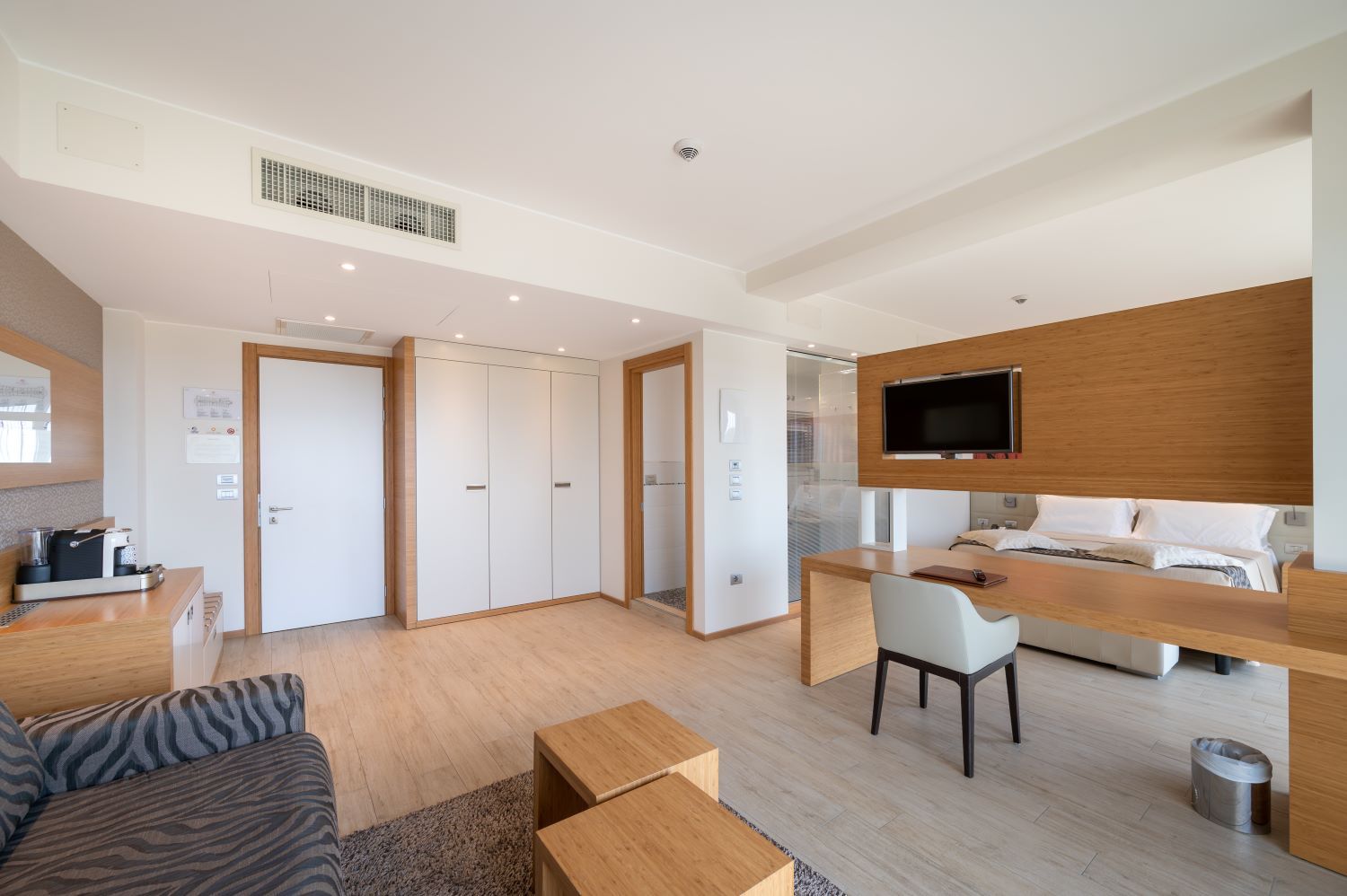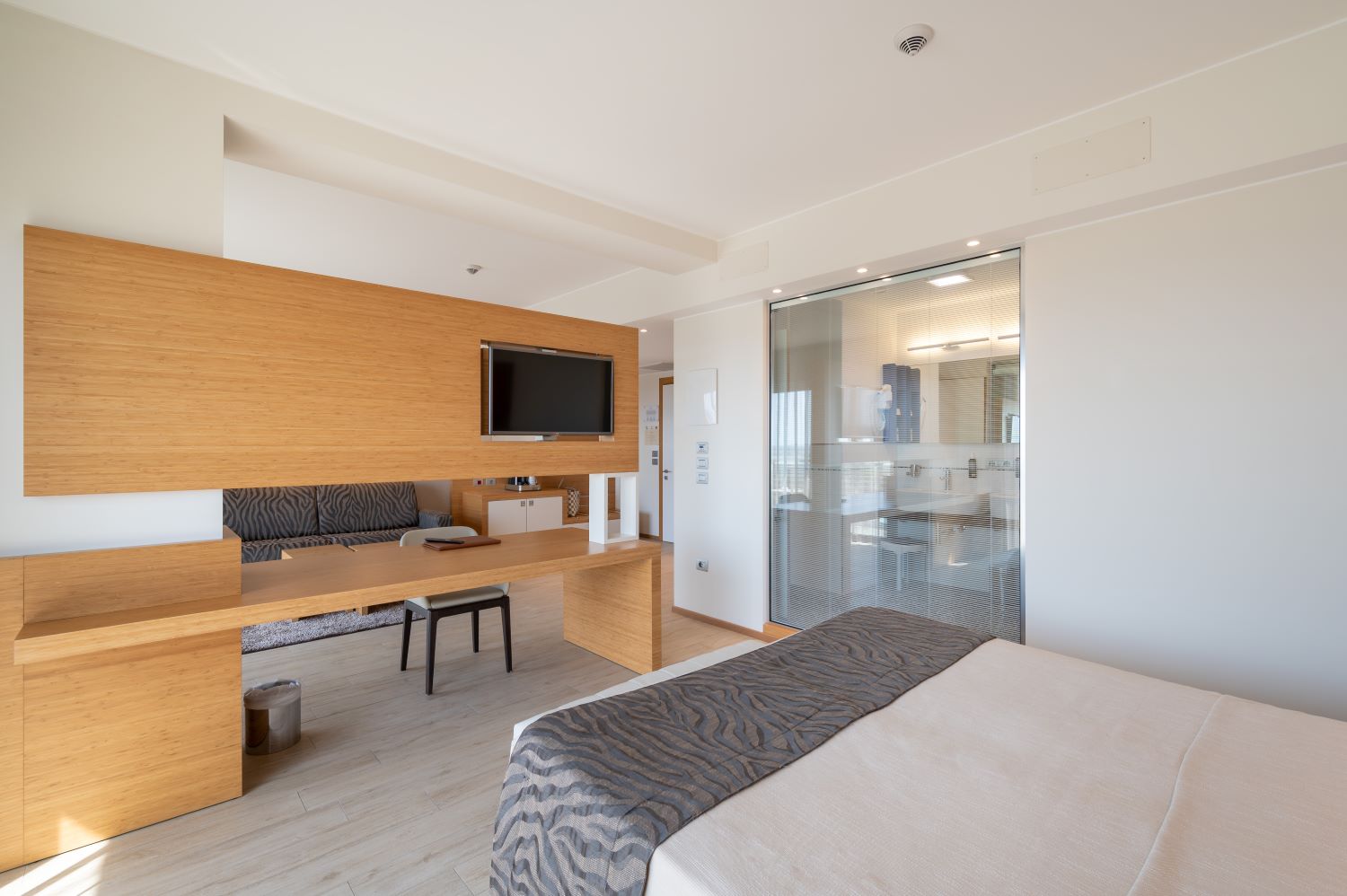 Dove gli spazi di design incontrano il colore del mare: situata ai piani più elevati, la camera BELLA VISTA, di circa 27 mq, vi donerà il piacere di un soggiorno con VISTA MARE.