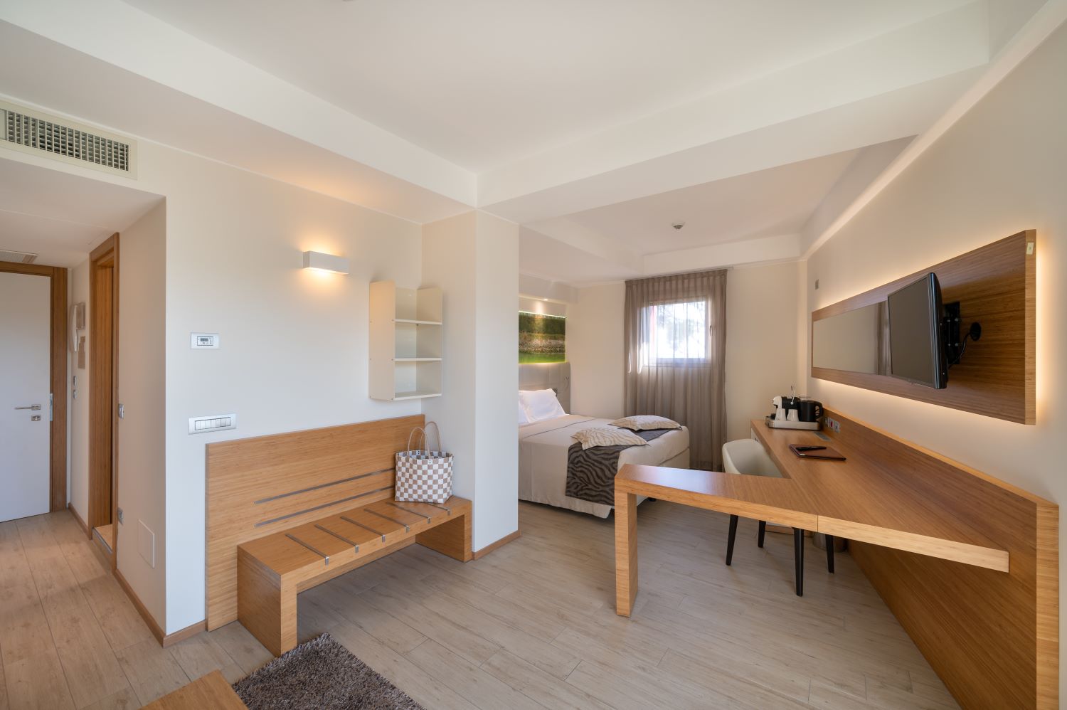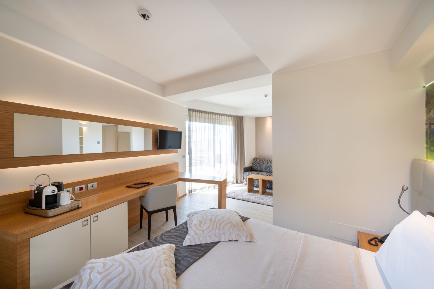 Rilassatevi negli ampi spazi della vostra Junior Suite DOLCE VITA: 27 mq di design che vi faranno trascorrere un soggiorno straordinario a pochi passi dal mare.