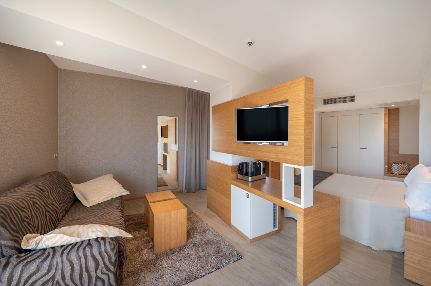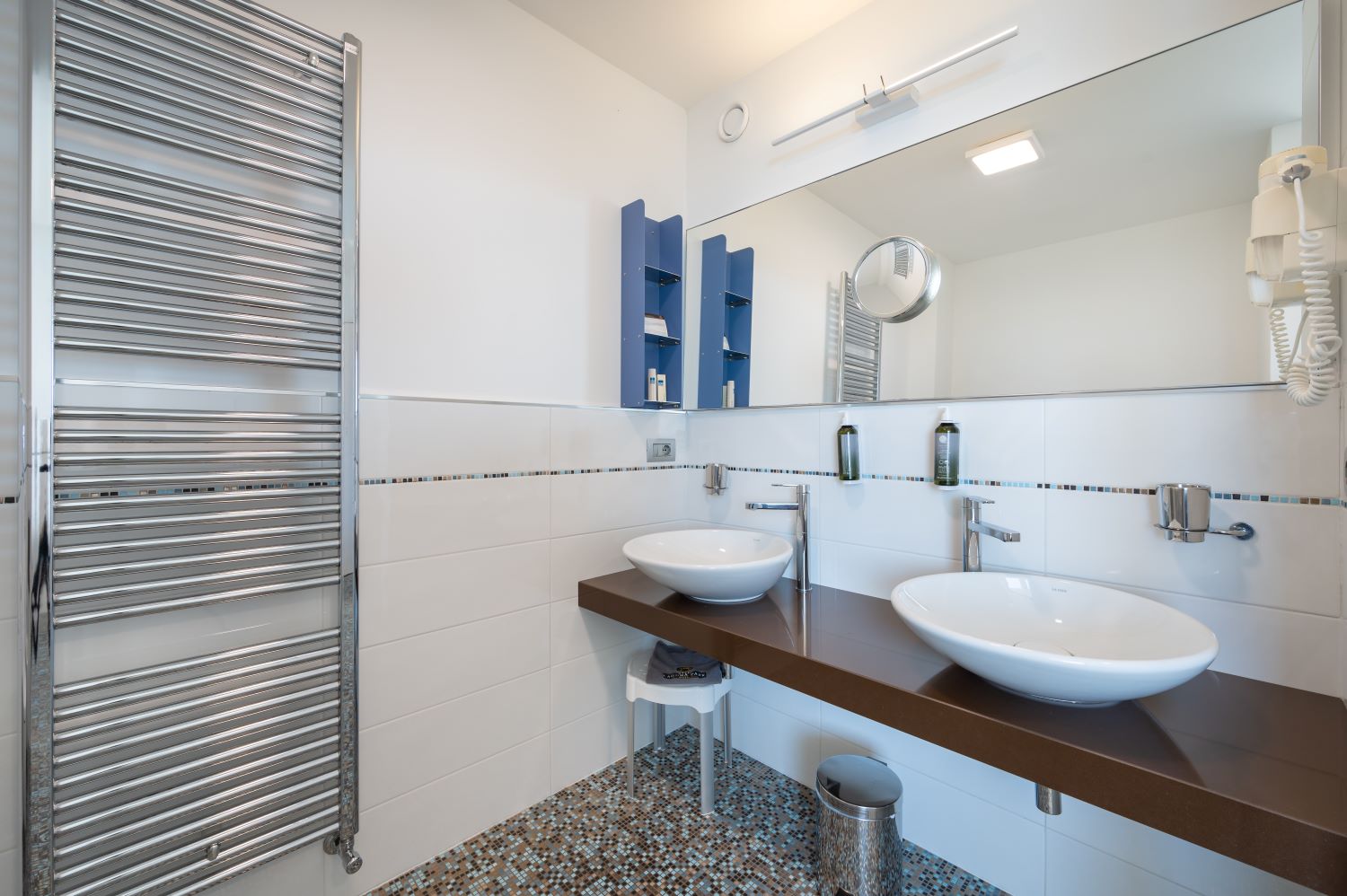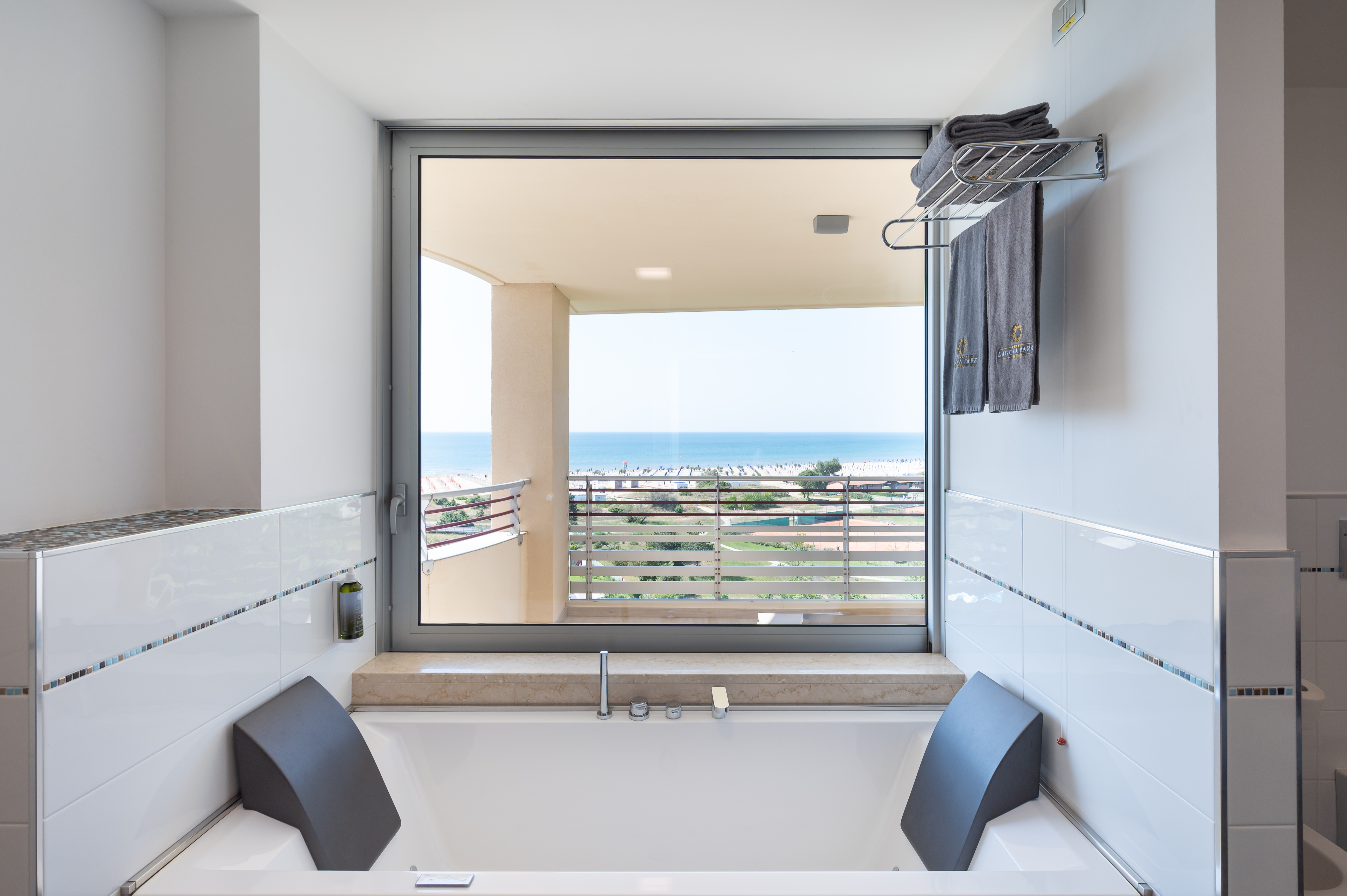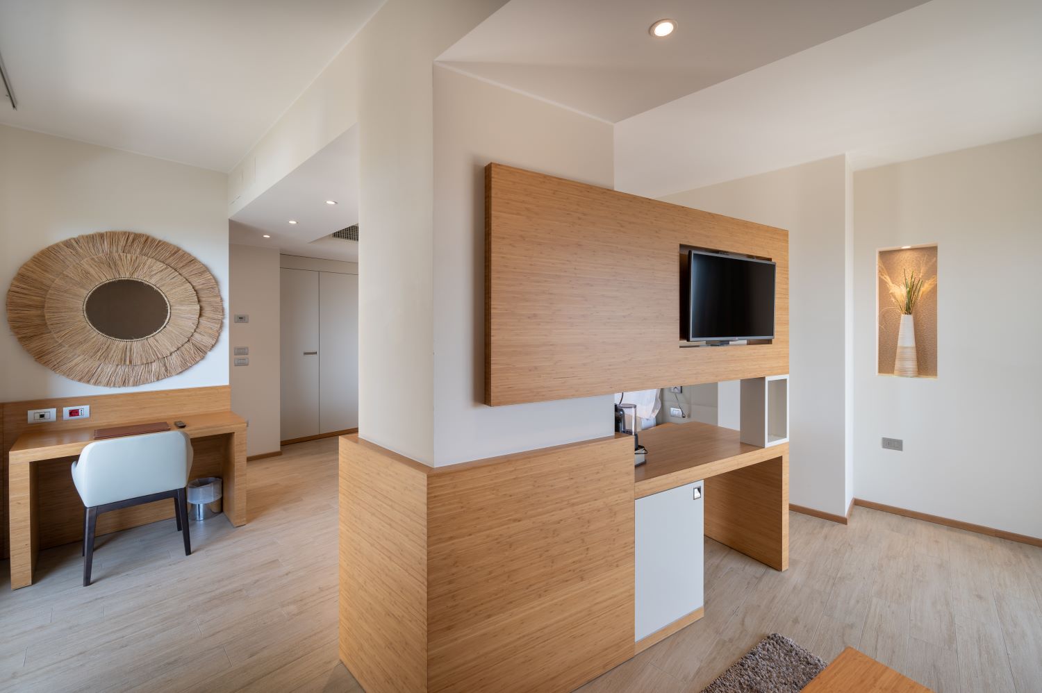 Regalatevi un soggiorno indimenticabile e ricercato: la vostra camera MARE, con il suo esclusivo bagno con idromassaggio e vista sull’Adriatico e la sua terrazza solarium privata FRONTE MARE vi farà trascorrere momenti di ineguagliabile intimità. - Camera matrimoniale wide FRONTE MARE di 35 mq - Angolo living con divano letto doppio - Ampio solarium privato con lettini prendisole - Bagno panoramico con vasca idromassaggio vista mare e box doccia - WiFi e Ultrafast LAN internet - Condizionamento autonomo noiseless - Morbido Spa Kit per il vostro relax - Courtesy Set Bibione Thermae - TV LCD 32° - Minibar - Cassetta di sicurezza - Moderni arredi in bambù Made in Italy - Pavimento in gres effetto legno - Pulizia completa al mattino e riassetto pomeridiano