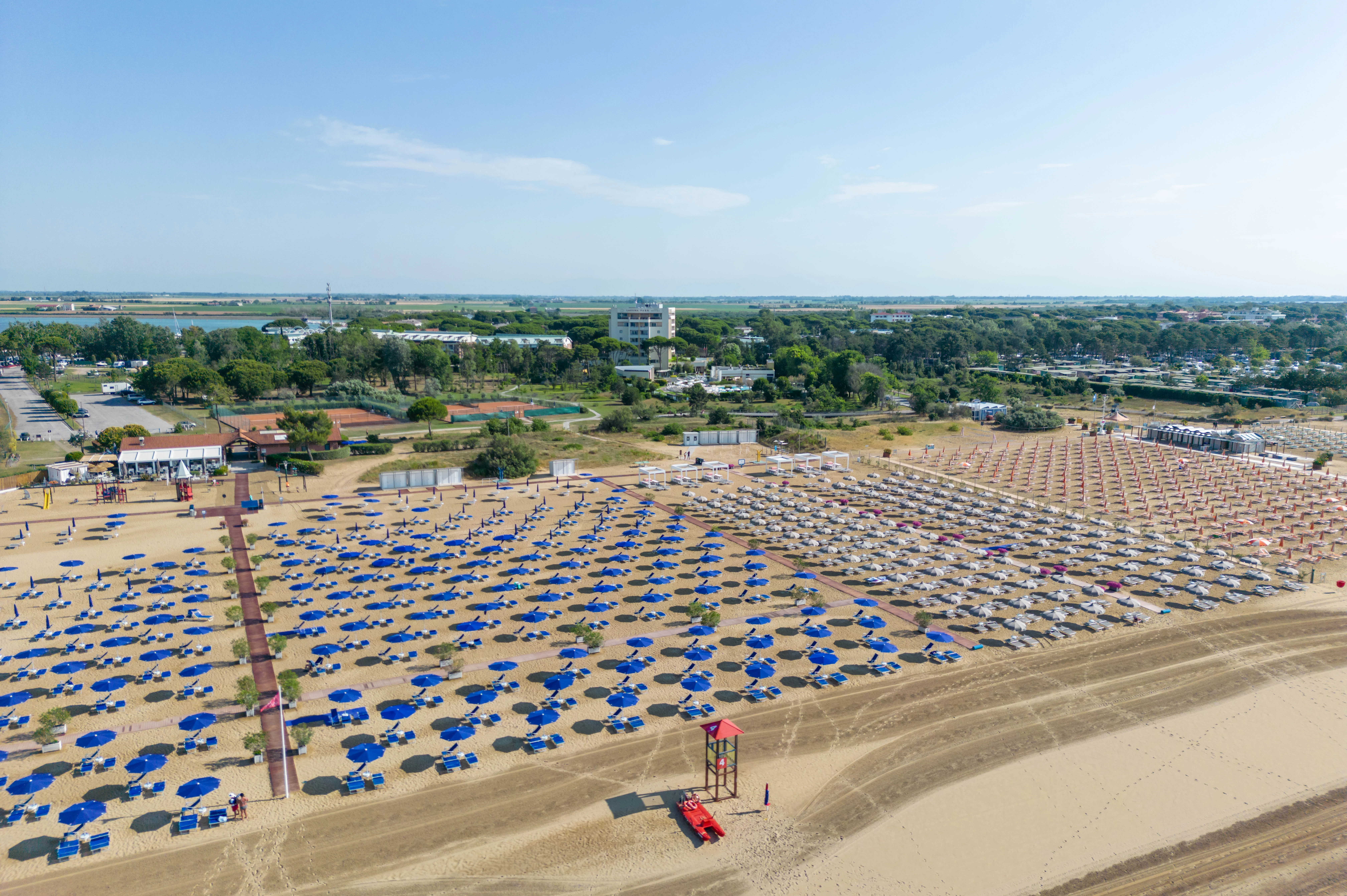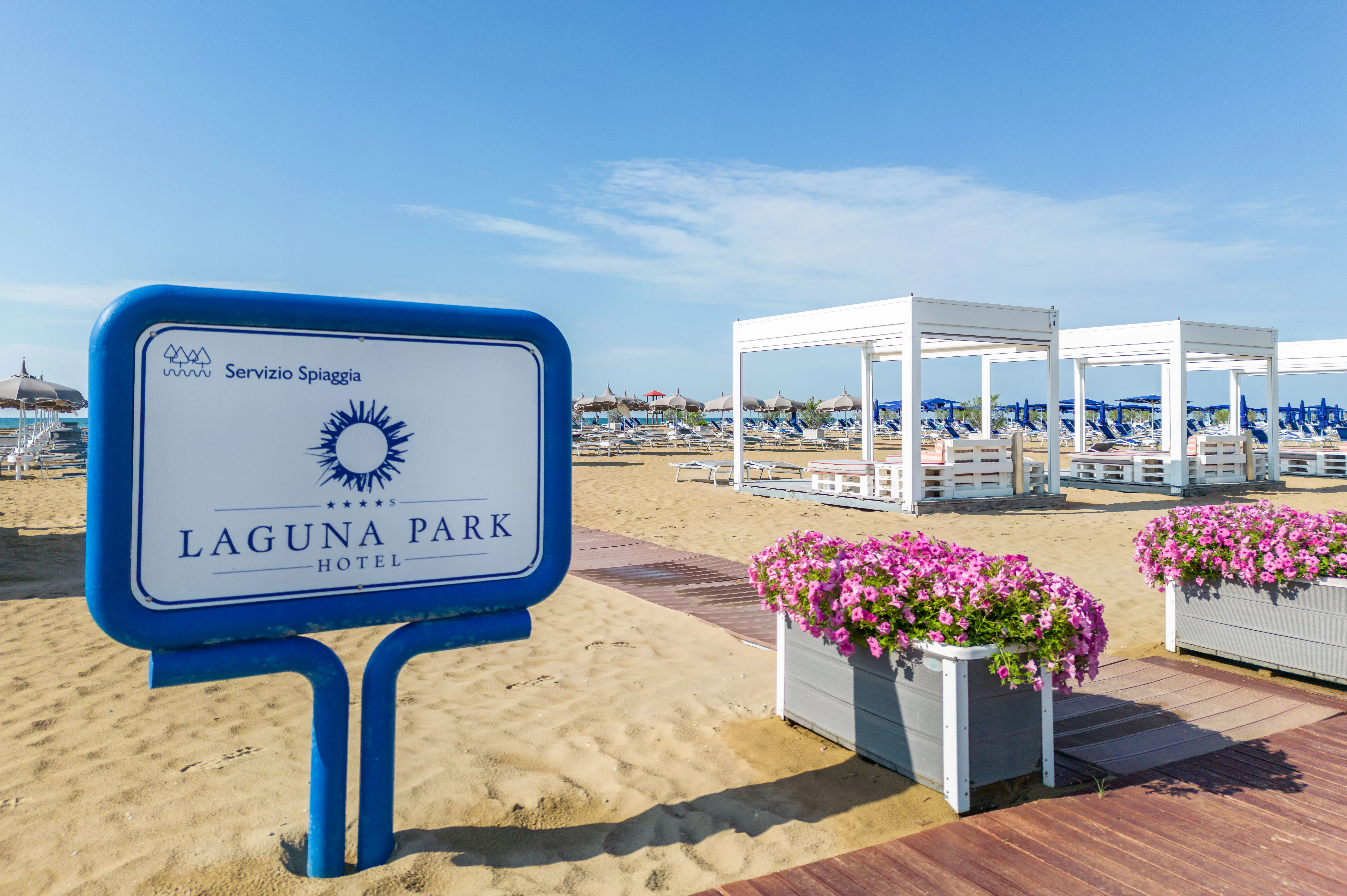 Al Laguna Park Hotel, ogni ospite ha a disposizione di un’area esclusiva sul litorale di Bibione Pineda, elegante e attrezzata con ombrelloni dotati di safe box, lettini comfort e gazebi riservati agli ospiti delle suite. Il tutto immerso in un contesto naturale premiato